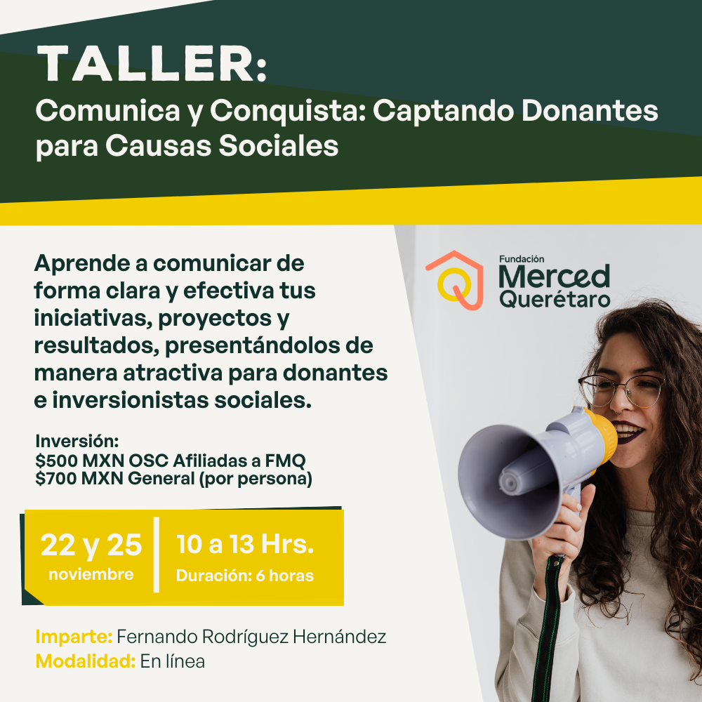 Objetivo: Brindar herramientas que permitan a las OSC comunicar de manera clara y efectiva, sus iniciativas, proyectos y resultados de una manera atractiva para los donantes e inversionistas sociales.